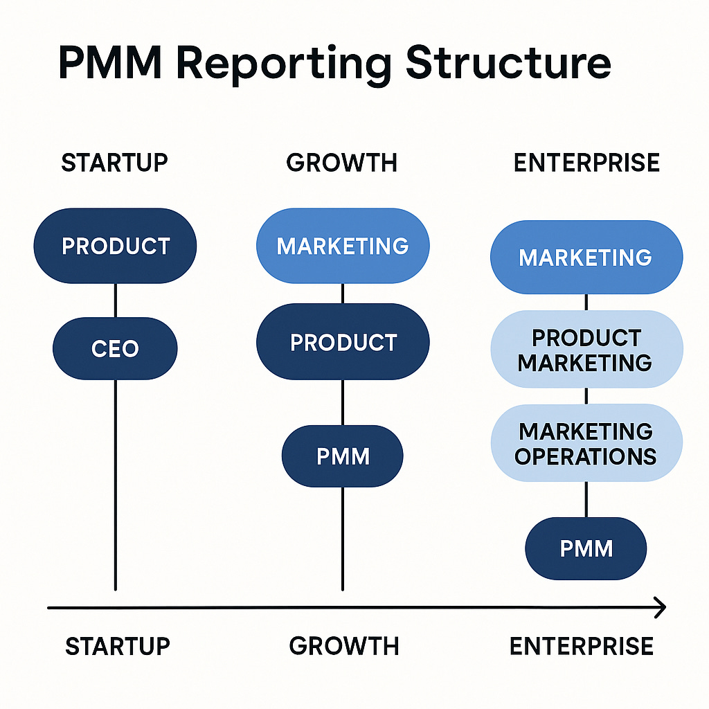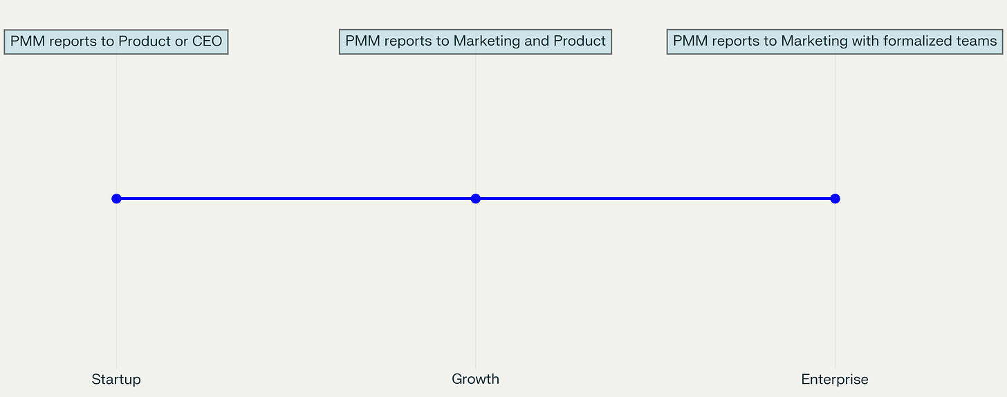Smaller companies (under $10M ARR): PMMs often report to Product or CEO while establishing product-market fit.
