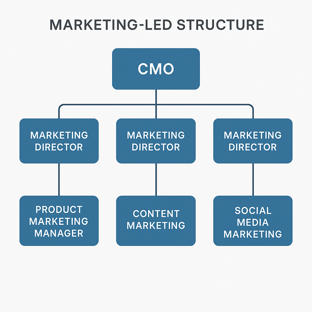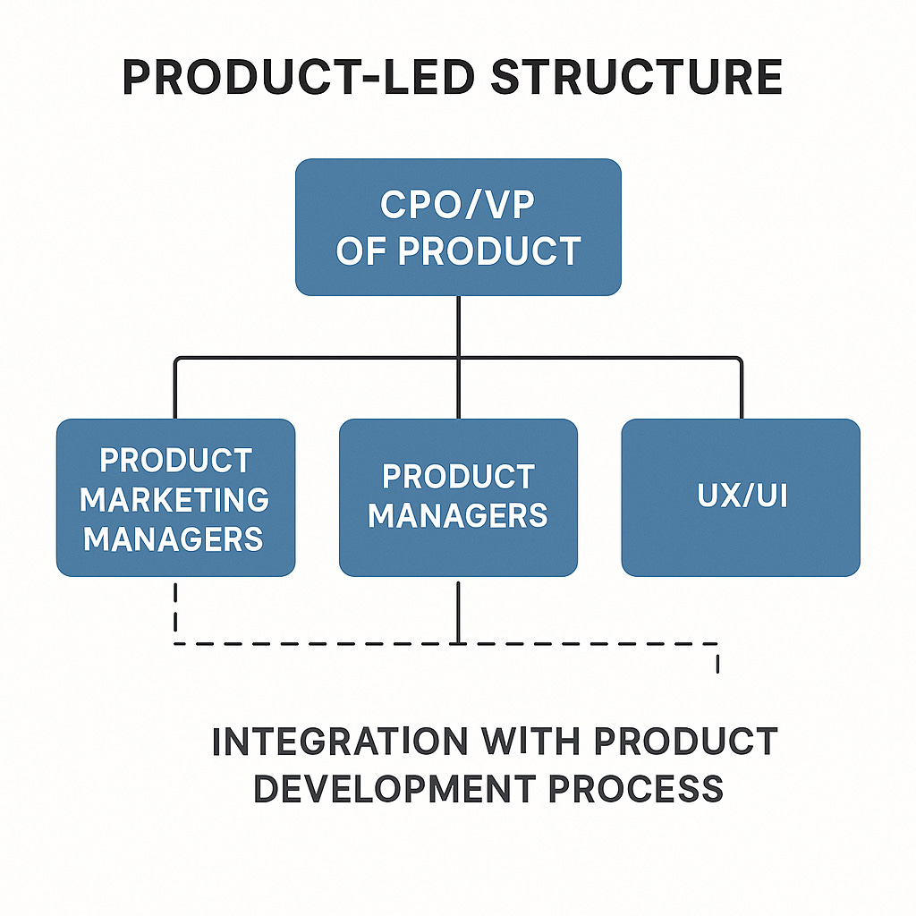 This structure works well for organizations where product marketing functions as a central strategic role rather than supporting either product or marketing.