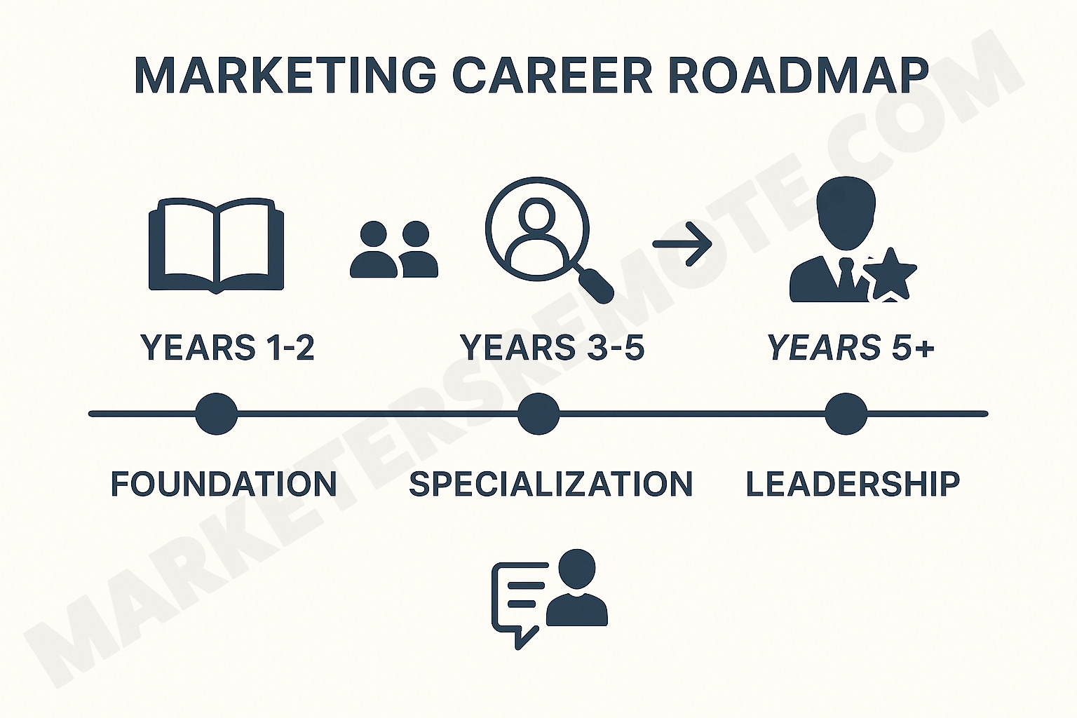 See the roadmap below for key milestones at each stage of your marketing career: