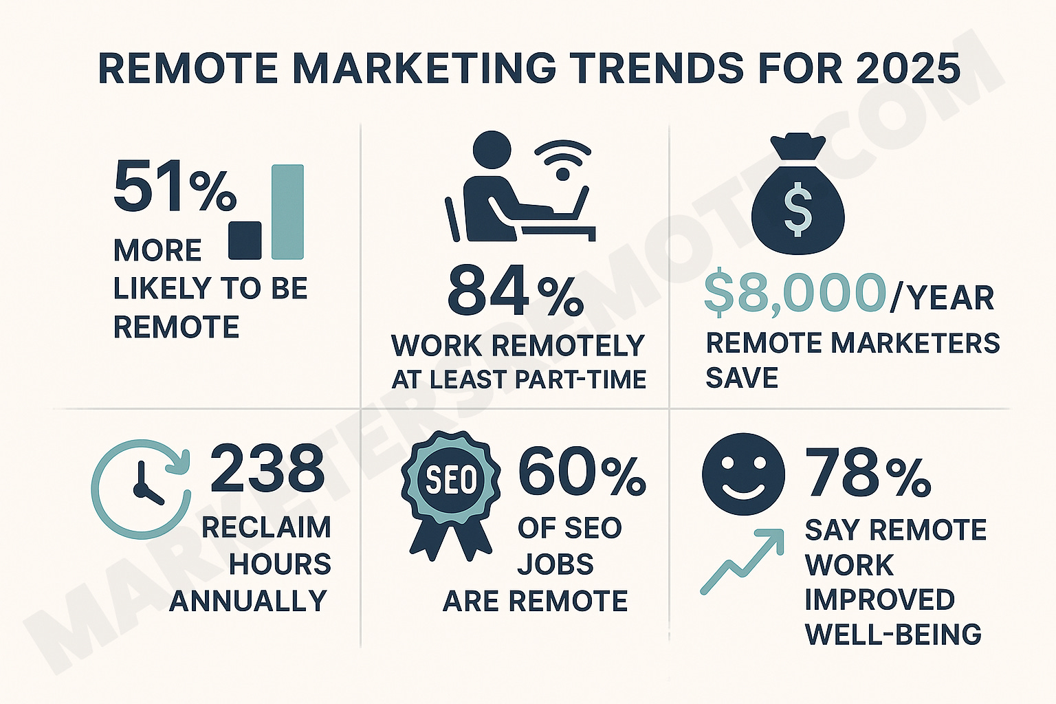 Remote marketing professionals save an average of $8,000 a year as they skip the commute and office expenses.